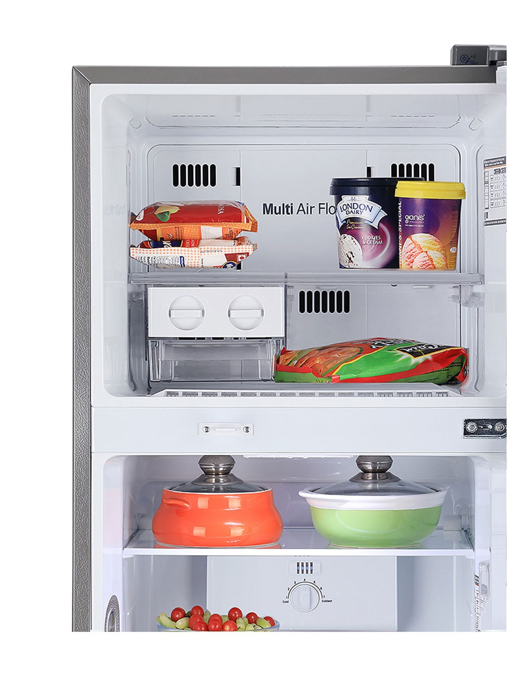 LG Door Cooling+ ™ makes inside temperature more even and cools the refrigerator 35% faster than the conventional cooling system. This reduces the temperature gap between the inner part and the door side of the compartment; thus letting the food remain fresh for long.