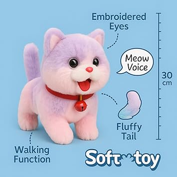 ✅ Interactive Walking & Meowing Toy – This cute plush cat toy walks and makes real meow sounds, creating a fun and engaging experience for toddlers and kids.
