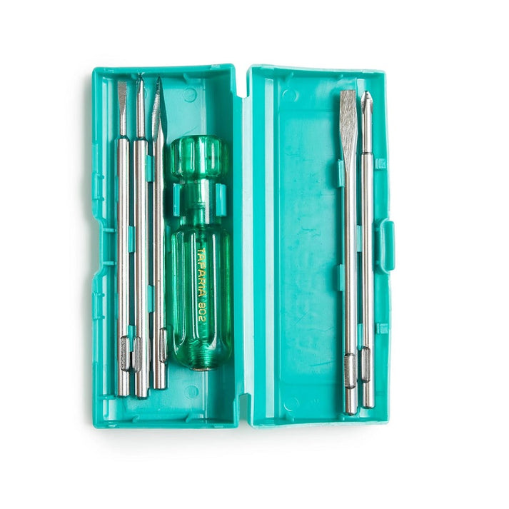 The TAPARIA 802 Screwdriver Set with Neon Bulb (Silver/Blue) is a versatile and practical tool for various applications. Featuring a single-piece construction in a sleek silver and blue design, it combines durability with aesthetics. The set includes a screwdriver with a built-in neon bulb, enhancing visibility in low-light conditions. This innovation aids precision in intricate tasks. The TAPARIA 802 set is an essential addition for both professional craftsmen and DIY enthusiasts, ensuring reliable performance and ease of use in a compact and stylish package.